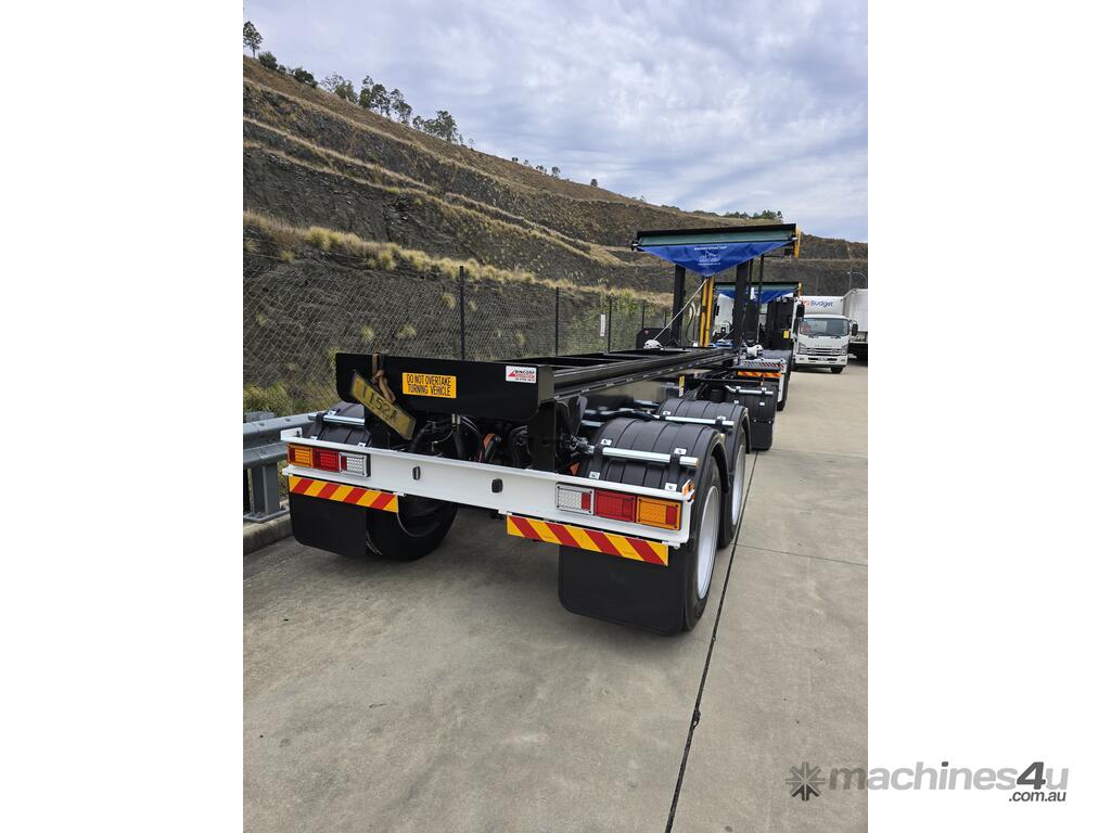 The Hooklift Dog Trailer is a high-performance, versatile trailer designed for heavy-duty hauling with superior safety and efficiency. Featuring a robust construction and advanced suspension system, this trailer is ideal for industries requiring secure and reliable transport of large containers. With an emphasis on precision engineering, durability, and ease of use, this trailer delivers optimal functionality across various applications.