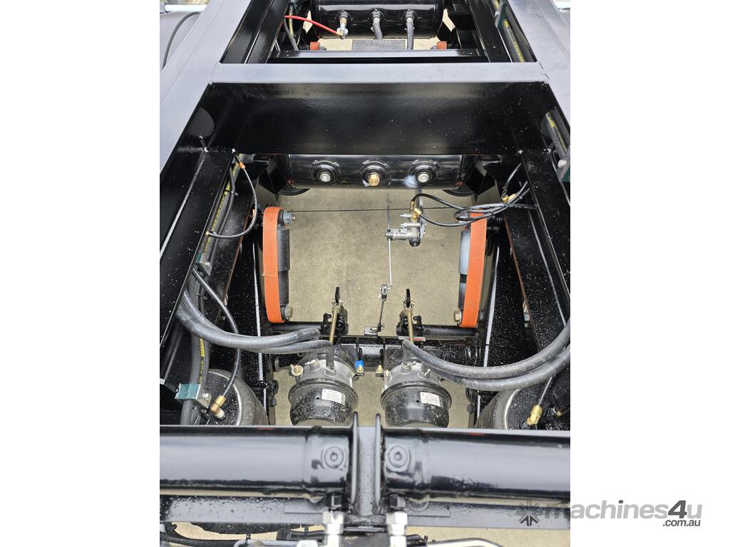 Bin Locking Mechanism: Hydraulic Bin Locking: Dual external clamping locks, designed to secure bins with via the bin rails. Operated via the Hook Lift bin lock control for convenience and reliability.