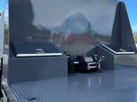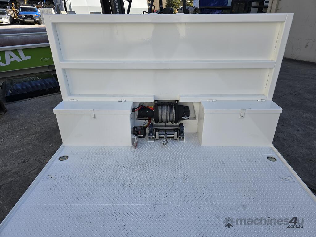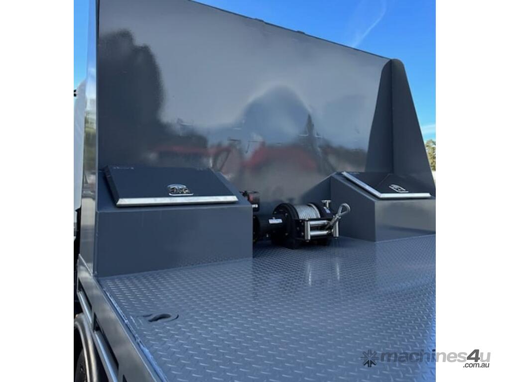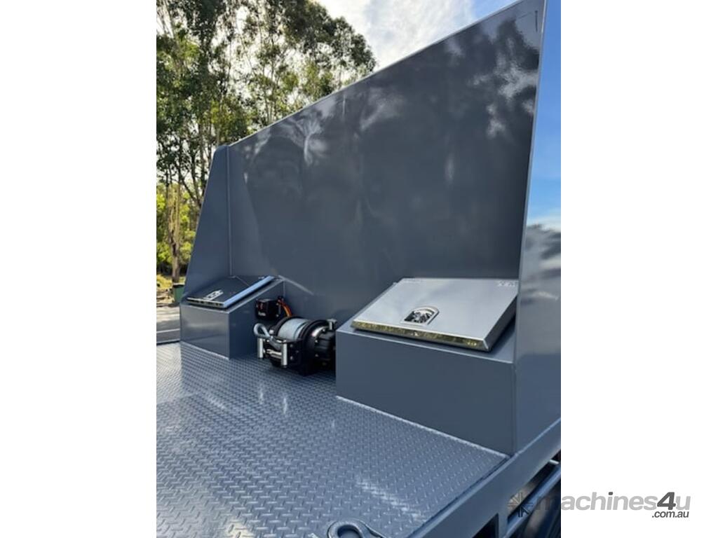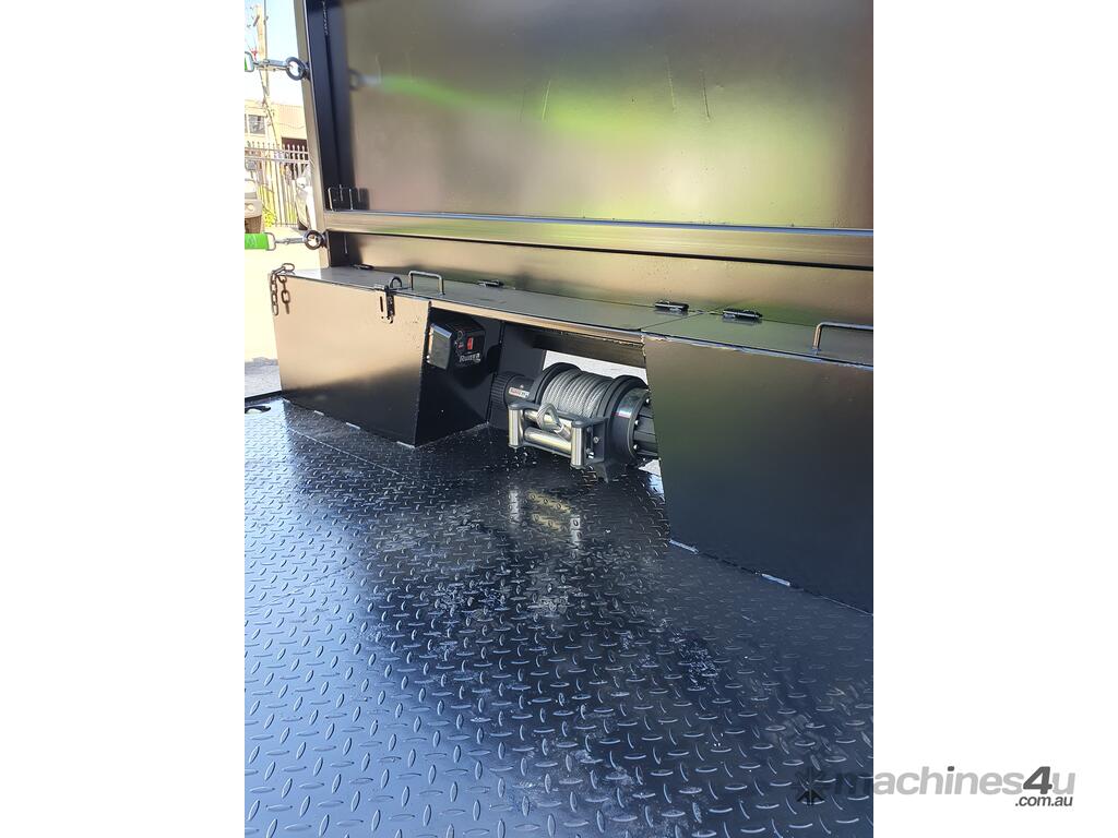 Loads of options including electric winch, container pins, beaver tails, tie down points, ramps, toolboxes, and more.