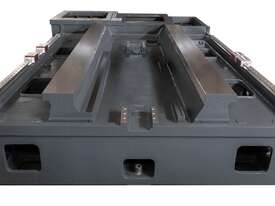 Massive 2+4 base design, TWO box ways paired by FOUR linear along the Z axis feed provide unparalleled support for heavy cutting on different applications. Box type hardness steel guideway with anti-friction Fluorine resin and forced-lubrication been applied for large-size machine and provided for the X, and Z axis guideways, positioning are performed with excellent accuracy and smooth stick/slip-free slide movements are assured.