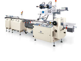 High-speed horizontal servo flow wrapper delivering 80–100 packs per minute with hygienic stainless construction and fast, tool-free changeovers.