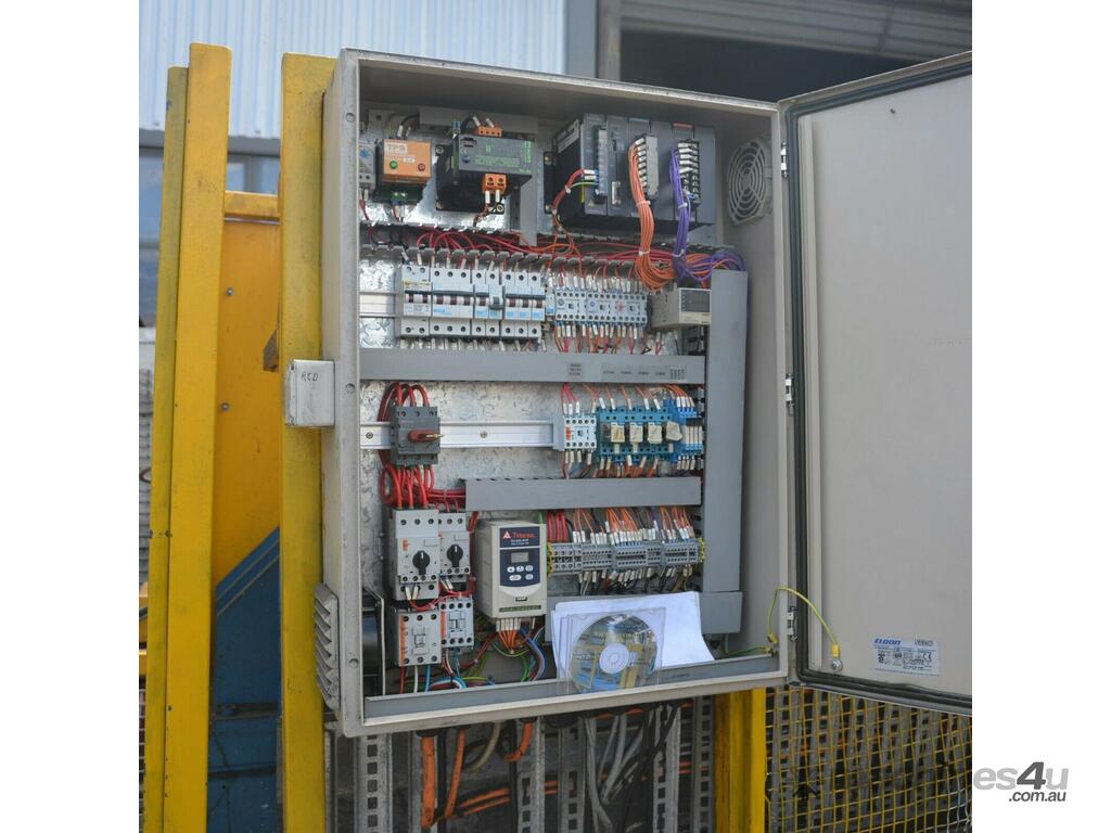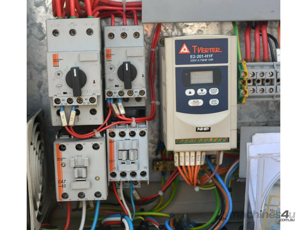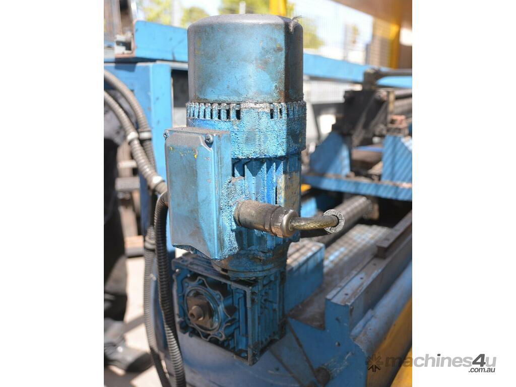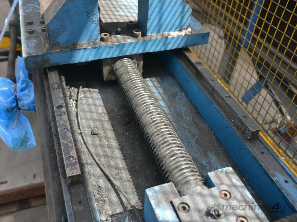 Horizontal long stroke press motor driven screw adjustable end stop.