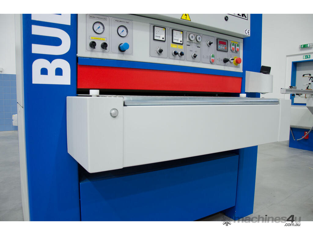 The Buldog 5 excels in its robustness, reliability and versatility of the combination of sanding aggregates. Buldog 5 can process material up to 1300 mm wide with solid wood, veneered surfaces and varnishes an easy task.