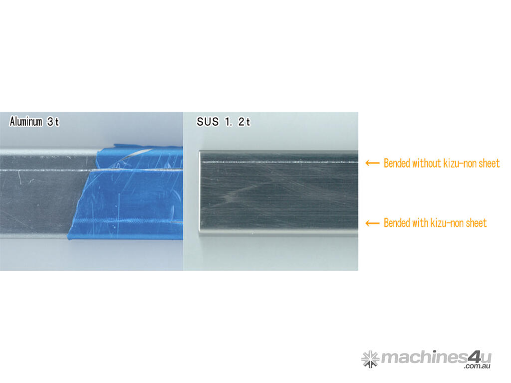 Developed and made in Japan, Kizu-Non is a heat and abrasion resistant material that prevents bend lines and marking occurring caused by the shoulders of the die during bending.