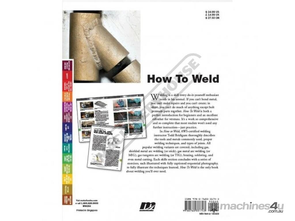 Welding is a skill that any do-it-yourself enthusiast needs in his arsenal. If you can't create; in short, you can't do much of anything except bolt premade parts together. How To Weld is both a perfect introduction for beginners and an excellent refresher for veterans. It's a work so comprehensive and so complete that most readers won't need any further instruction - just practice.
