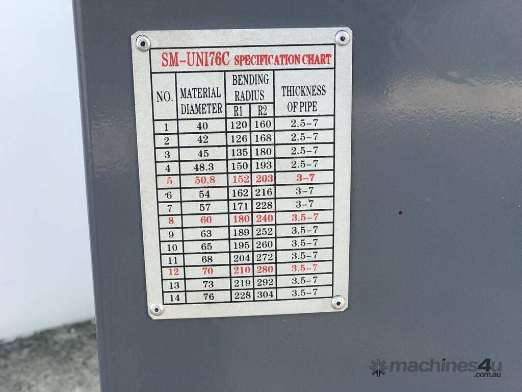 Tube & Pipe Bender. SM-UNI76C - 76mm Capacity Complete with 4 Sets of Tooling to Suit,