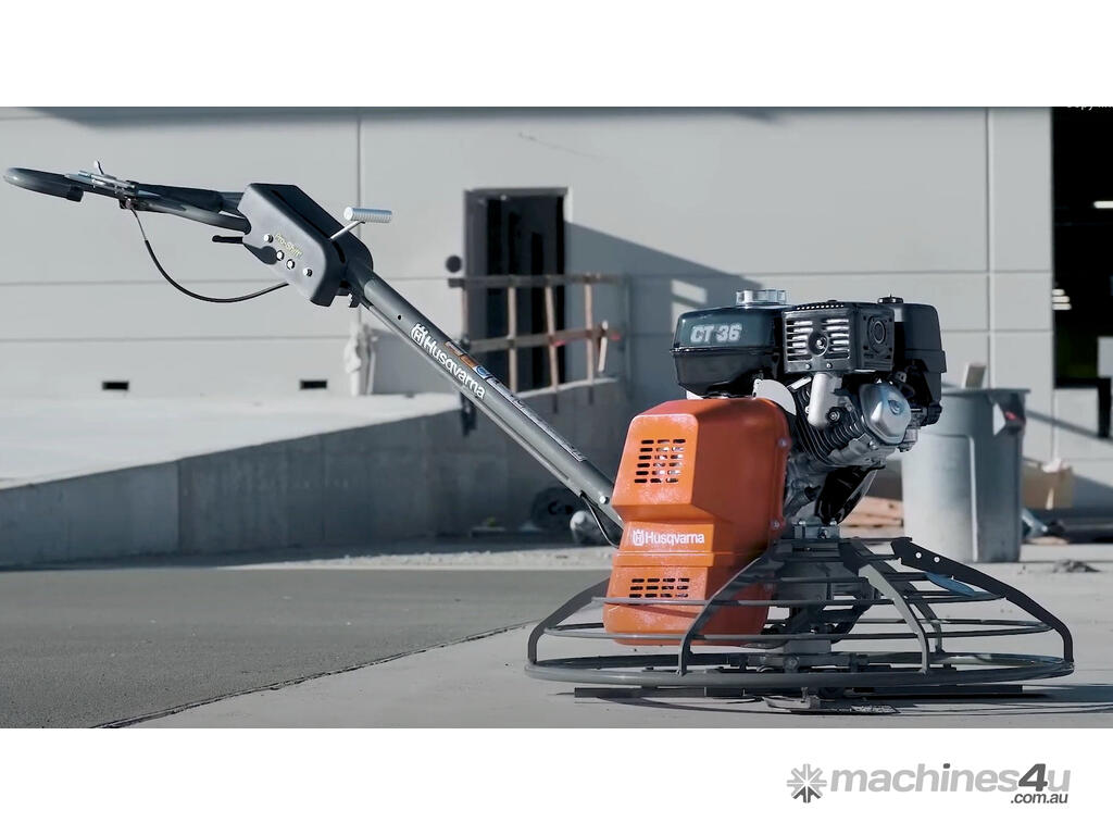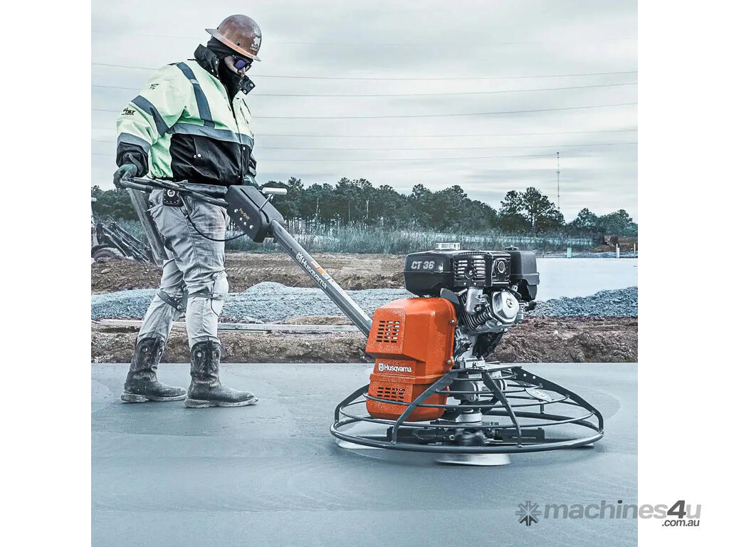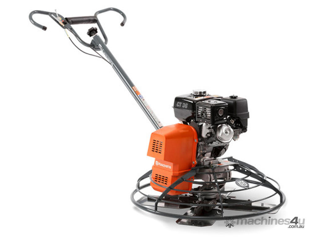 The models of the Husqvarna CT 36 walk-behind trowels feature a trowel diameter of 91.5 cm and are ideal for finishing medium-sized areas. The trowels are optimally balanced, therefore they can be effortlessly controlled in the wide range of speeds. The transmission brake, electronic safety switch and engine speed sensor offer additional triple protection for the user. In an emergency situation the device will simply switch off and the handle will come to a stand-still after no more than a three-quarter turn. Furthermore, the unit will only start if the throttle lever is set to zero. This prevents an inadvertent rotation of the handle on start-up.
