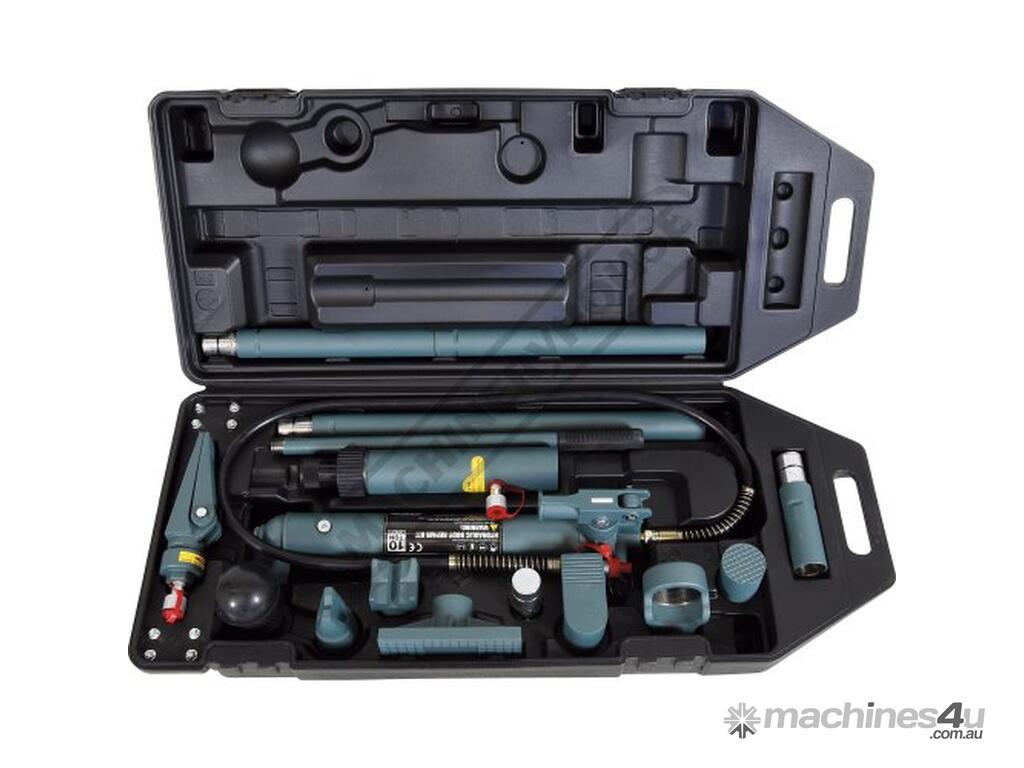 This Hafco PBK-10H Hydraulic Panel beating kit has just about every attachment needed to bend, straighten, stretch, push, spread & manipulate automotive metal frames & panels back to its original shape or location.