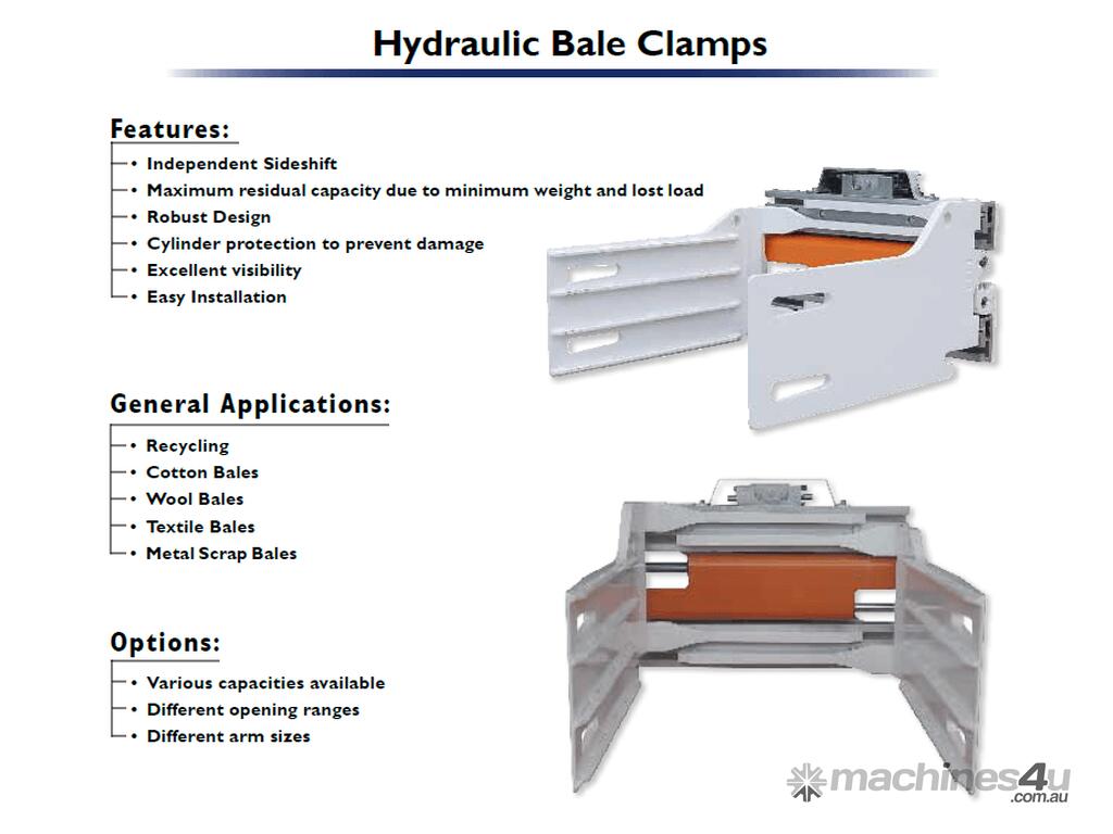 Bale clamp attachments are suited to a variety of material handling including recycling, cotton, wool bales, scrap metal bales, and textiles.