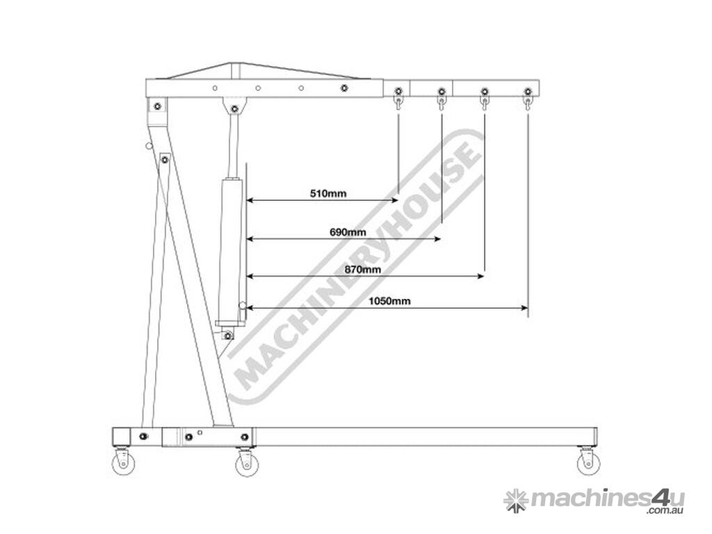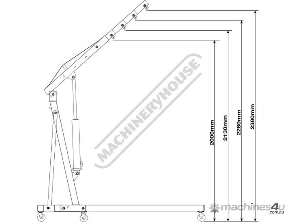 The long extendable jib has four positions with lifting capacity of 310kg, 625kg, 930kg or 1250kg to give you more reach & with the lifting height range from 0-2300mm so an engine can be lifted out of the engine bay with ease.