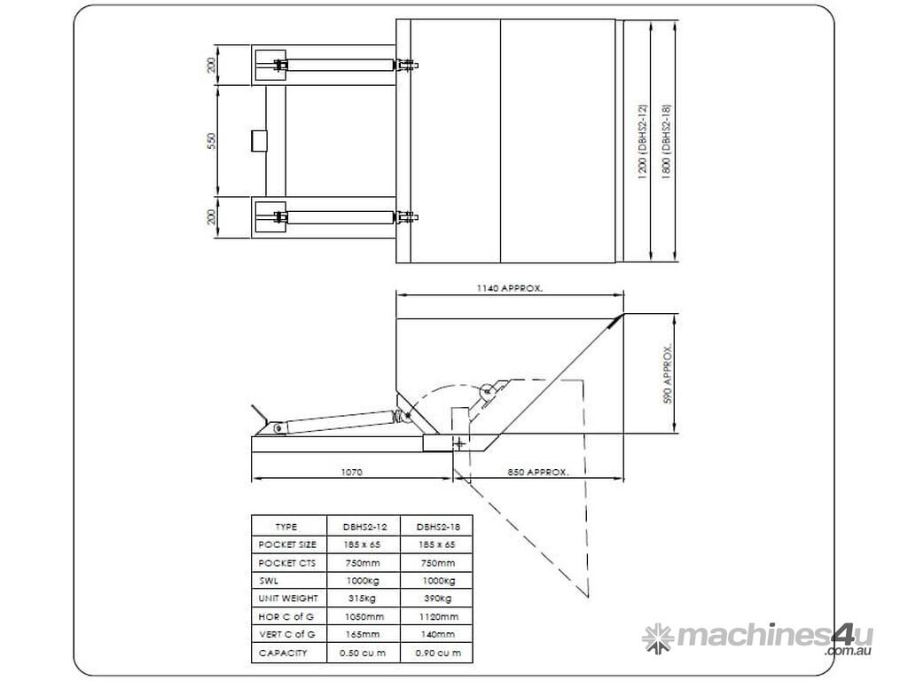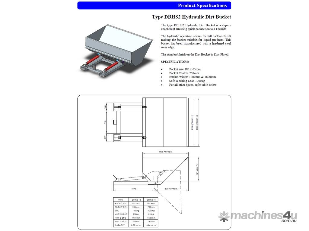 The Hydraulic Dirt Bucket Attachment (DBHS2) is a fast and easy, slip-on forklift attachment.