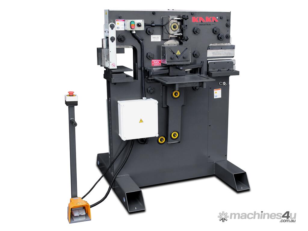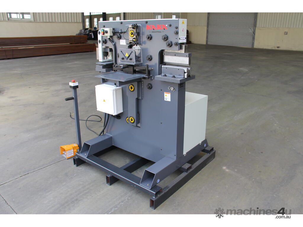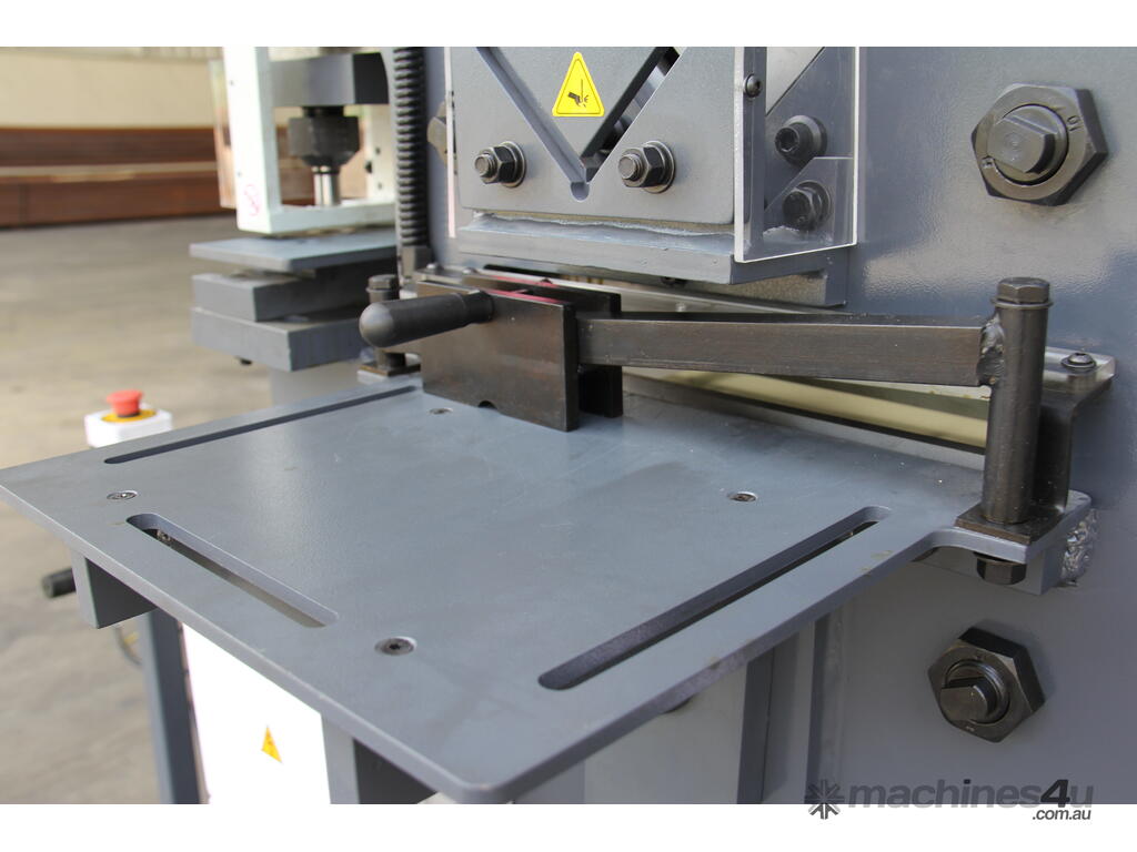 The KANG 55-Ton Ironworker is a heavy-duty, hydraulic fabrication powerhouse designed for metalworking professionals who demand speed, precision, and versatility in one compact machine. Built with rugged steel construction, this 55-ton beast handles everything from structural steel to custom fabrication with ease, perfect for workshops, fabrication shops, maintenance teams, and steel suppliers. With four dedicated workstations and the ability to accept 11+ optional attachments, it replaces multiple machines (punch press, shear, notcher, etc.) in a single footprint.