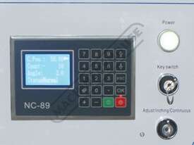 Ezy-Set NC-89 Go-To Programmable digital control provides up to 1000mm travel on hardened ballscrew backgauge allowing operator to program the cut length required. Also fitted is a stroke counter & stroke adjustment dial allowing shorter materials to be cut using a shorter stroke length this feature will increase production.