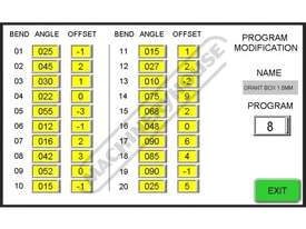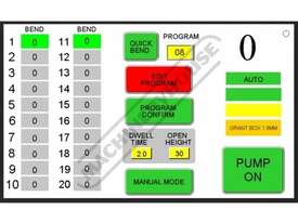Ezy-Touch NC Touch Screen Control features 99 programs each program has up to 20 bends & each bend has material compensation. It also incorporates a quick bend function for jobbing work