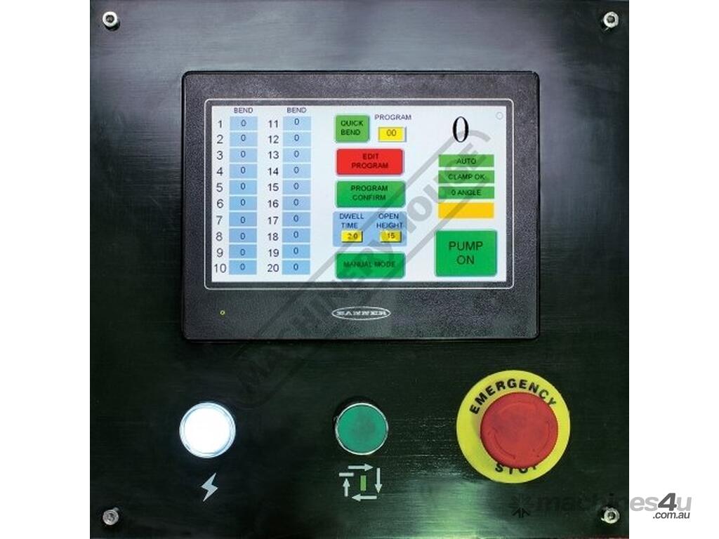 Ezy-Touch NC Touch Screen Control features 99 programs each program has up to 20 bends & each bend has material compensation. It also incorporates a quick bend function for jobbing work