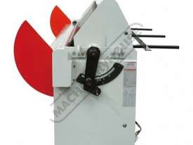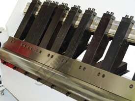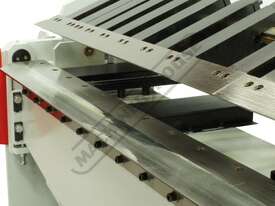 Includes an adjustable rear manual backgauge also adjustable for tapered material