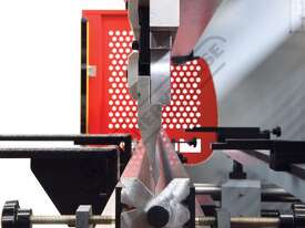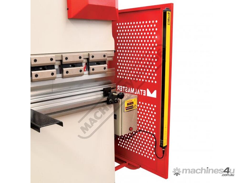 Rear sliding safety gate with micro switch combined with access panels placed at each end of machine allows the operator to clearly view tooling and work piece during the bending operation Metalmaster specially design gates to suit Australian safety requirements