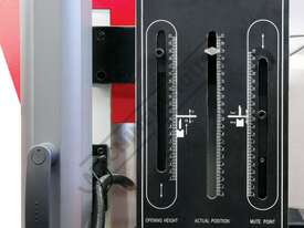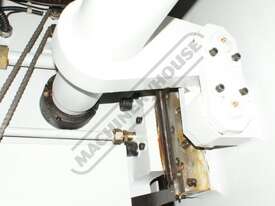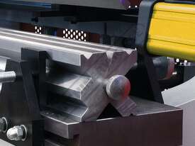 Dual Hydraulic rams balanced by a heavy duty torsion bar Electronically controlled by the E21 NC control assuring accuracy & repeatability.