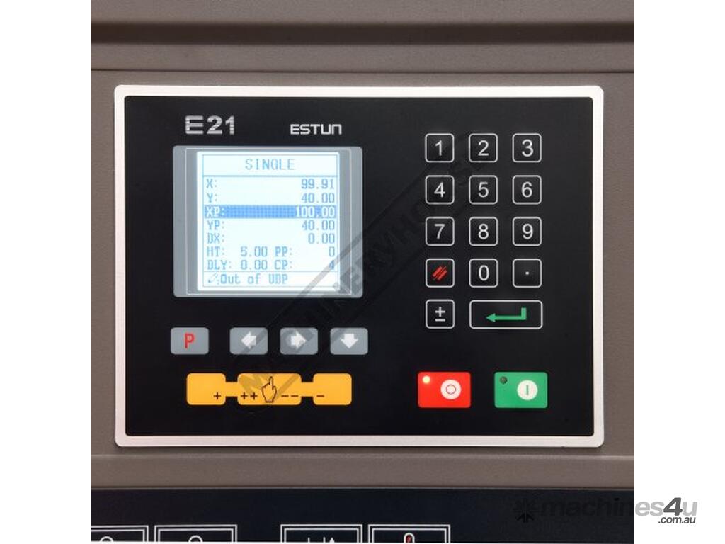 Estun NC-E21 programmable digital control stores up to 40 unique programs with 25 automatic progressive bending steps in each individual program assuring production accuracy & repeatability every time.