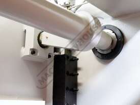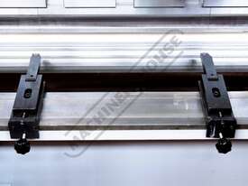 Hydraulic synchronised positive stop design the ram stroke is controlled by a precision mechanical nut depth stop built into each cylinder electronically controlled by Estun NC-E21 digital control assuring accuracy and repeatability.