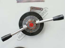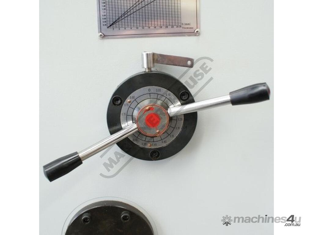 Blade gap adjusting dial mounted on side of machine for convenient and accurate alteration for all your material thickness from 1 - 12mm. This dial is designed so that a straightforward rotation clock or anti clockwise to achieve desired plate thickness. Measurement on dial indicates and refers to actual blade gap distance in millimetres
