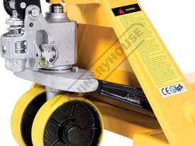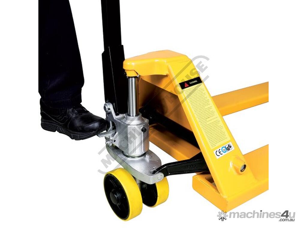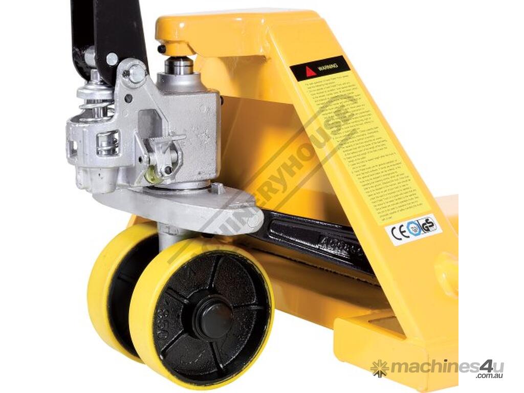 This 2500KG pallet truck is suitable for many types of industries for example, Hire Companies, Work Sites, Manufacturing Shops, Shopping Centres, Warehousing Stores, Bottle Shops & Schools & TAFES.
