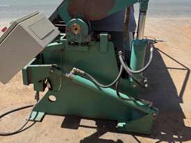 Head clamping through trunnion bearings mounted on the centre line of the side frames to minimise head deflection