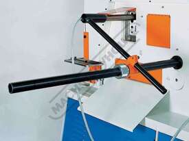 Optional equipment for cropping channel tee and I-beam sections