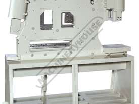The double cylinder "S/SD" series have two control foot pedals, & separate operations can be safely performed simultaneously without interference. The low pressure setting for tool change provides maximum operation safety. The long punching cylinder stroke & deep throat enable mounting a wide range of special optional equipment. The large punching base with the "T-slot" fixing provide a solid base for securing the punching tooling, as well as a wide range of optional & custom designed tooling.