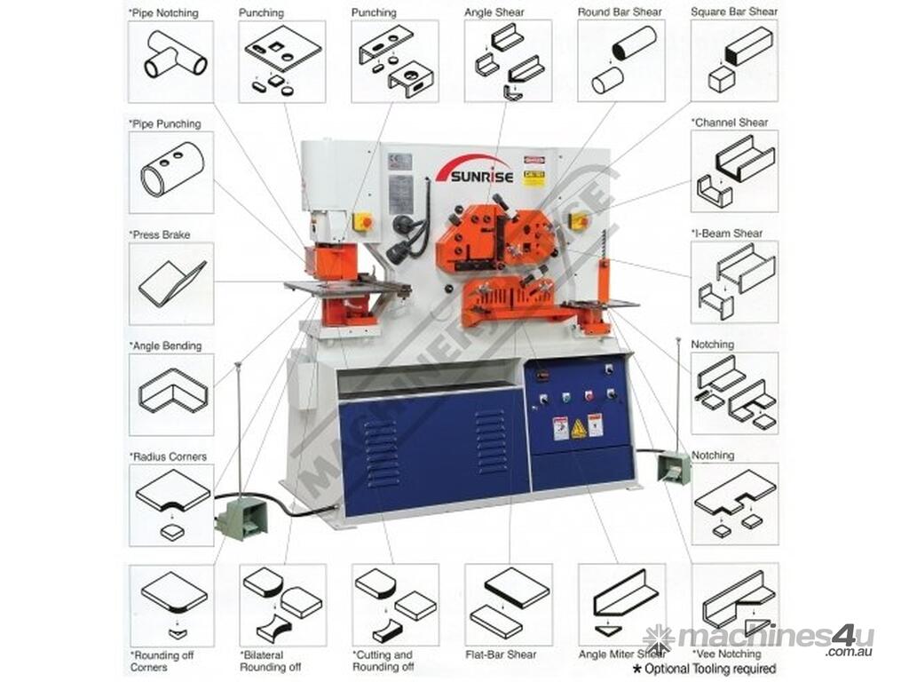 The Sunrise Punch & Shears are manufactured in Taiwan, also known as Ironworkers are well recognised in our Australian market for the machines being reliable & durable due to their structurally well manufactured unique design & engineering excellence. Sunrise is ISO-9001 certified by BVQI, and our products meet the CE safety requirements and regulations. Sunrise relentlessly seeks continuous improvement and product development to keep a step ahead of their competitors.