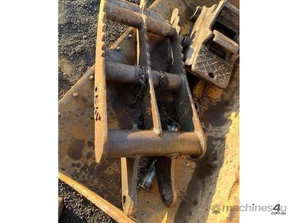 Hydraulic quick hitch for 20-25 tonne excavator, Komatsu brand, Japanese make, very good quality, 70mm pin diameter, about + and - 480mm pin to pin center, 325mm gap between ears, ex Komatsu PC220 excavator, yellow color, as new condition