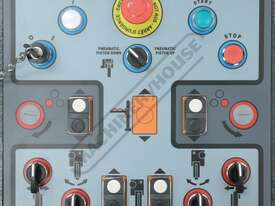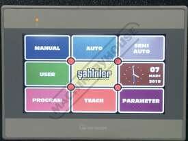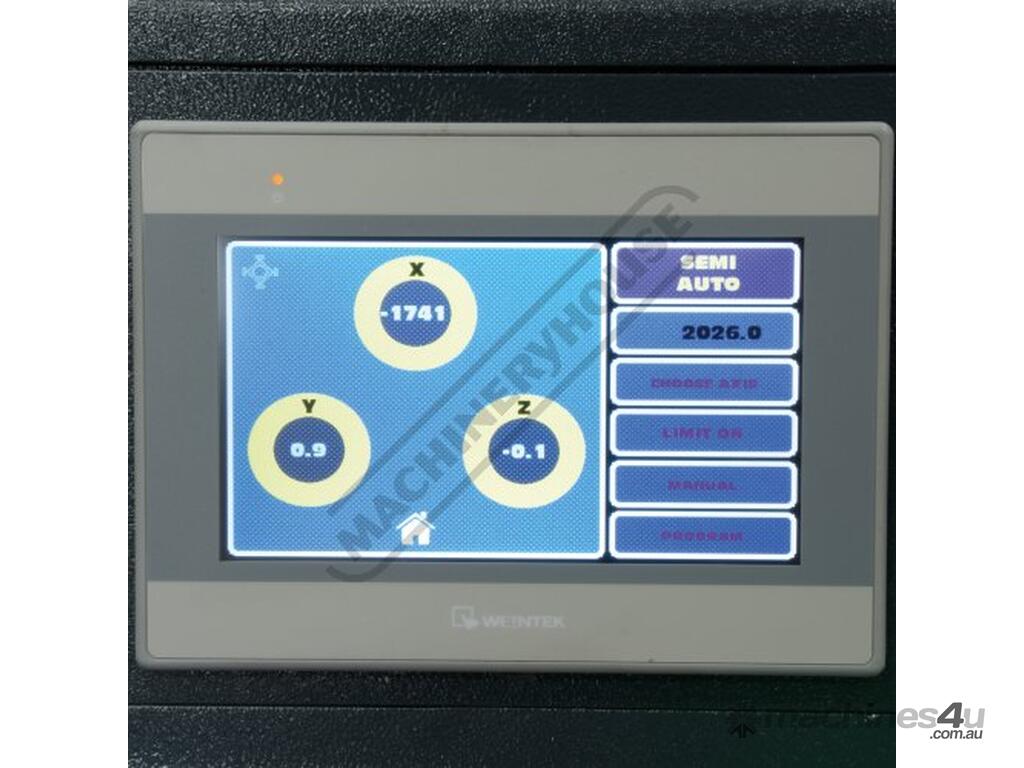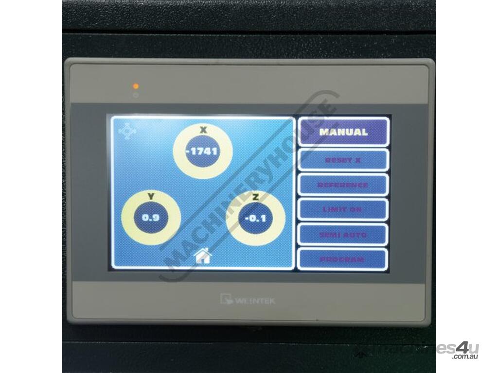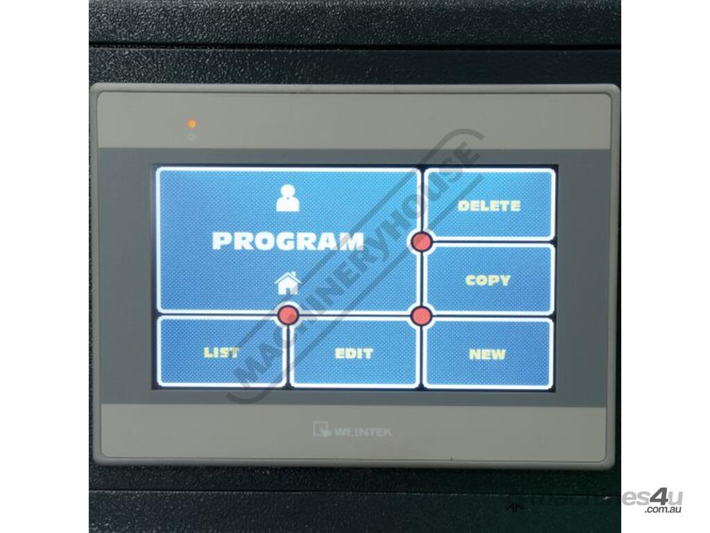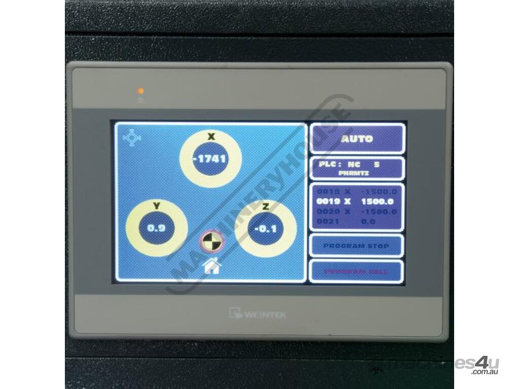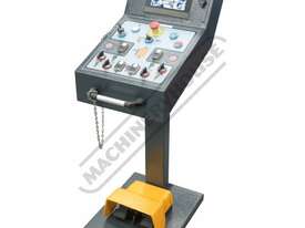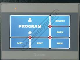 NC panel provides you to control an axis on manual, automatic or semi automatic mode, X & Y Axis can be moved by control buttons, X-Axis = rotation of left & right drive rollers and Y-Axis = up & down position of the top roller. NC control unit has store up to 500 programs with 200 lines on each program. The storage capacity can be increased to 10000 programs with the use of a USB flash memory stick.