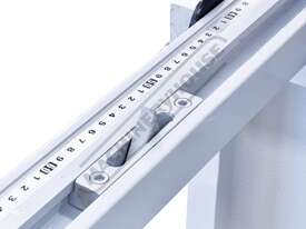 A heavy duty squaring arm fitted with a graduated rule allows the operator to quickly cut the required size from the front of machine. The squaring arm also assists to align the material square to the cutting blades.