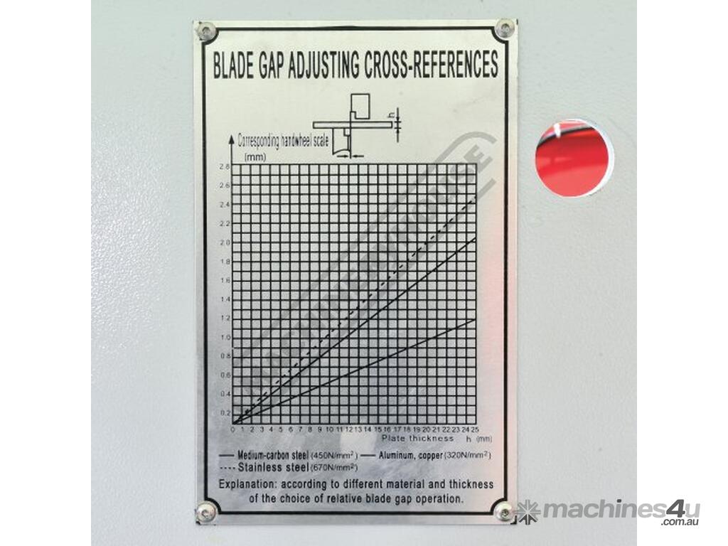 The heavy duty swing beam design features a fixed rake blade specifically developed for shearing material from mild steel through to stainless steel. The blades are made from high tensile tool steel and also provide high resistance to Impact, wear & corrosion.