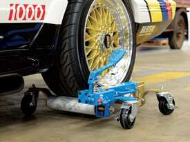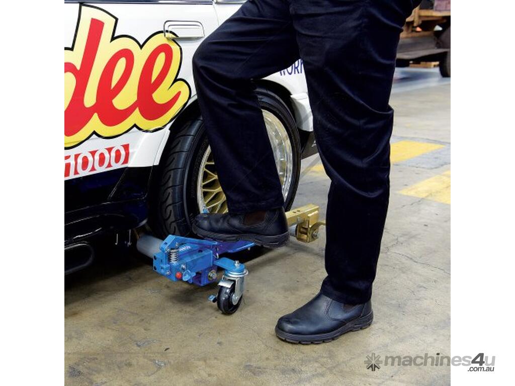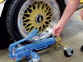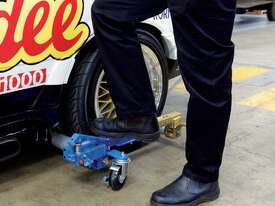 There's no jack like a VJ-680 jack. Its twin rollers slide around the tire and squeeze upward, lifting the tyre smoothly off the ground in seconds with a few pumps of the hydraulic foot pedal.