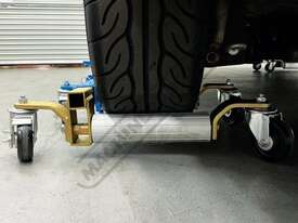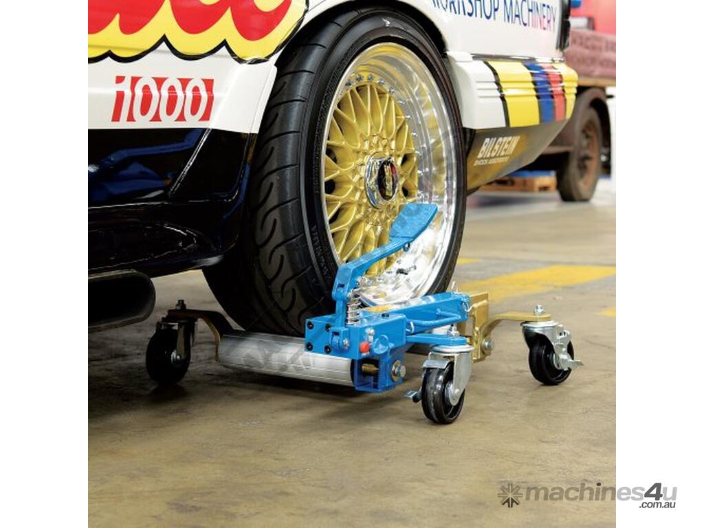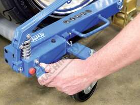 There's no jack like a VJ-680 jack. Its twin rollers slide around the tire and squeeze upward, lifting the tyre smoothly off the ground in seconds with a few pumps of the hydraulic foot pedal.