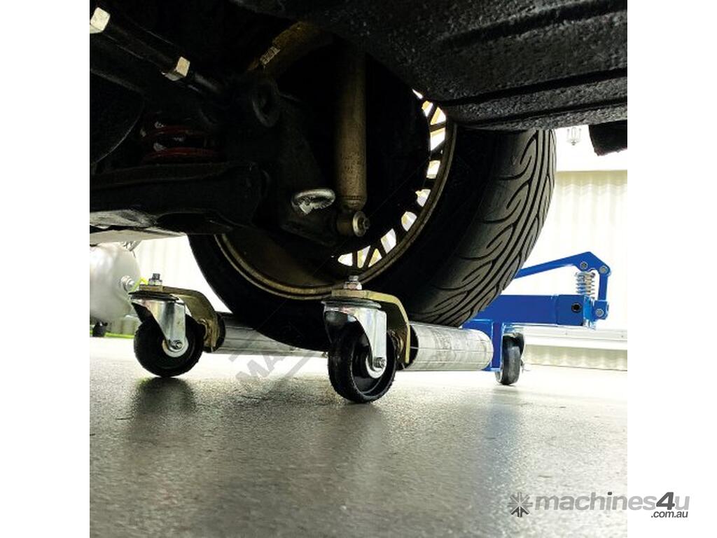 The low friction, with 360° caster wheels lets you spin, side load, and position the car without damaging the floor or the car, faster and safer than floor jacks and at a fraction of the cost of electric carts.