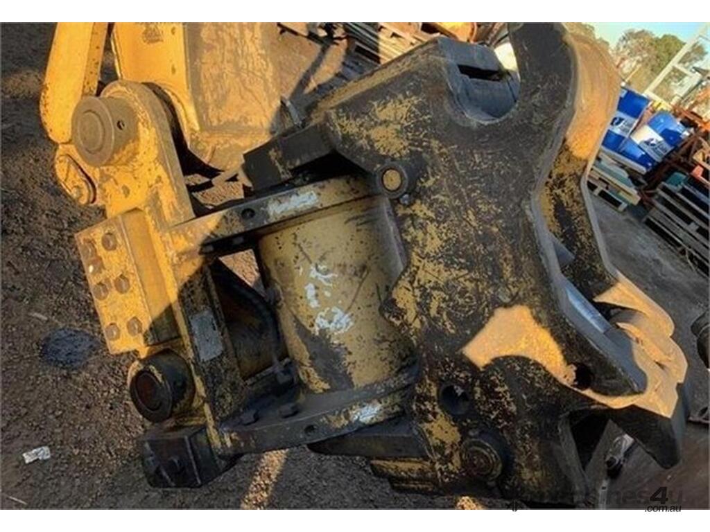 Hydraulics rotate tilt hitch for 10-15 tonne excavator, very good quality, mm pin diameter, + & - mm pin to pin center, mm gap between ears, ex Caterpillar M315 excavator, yellow color