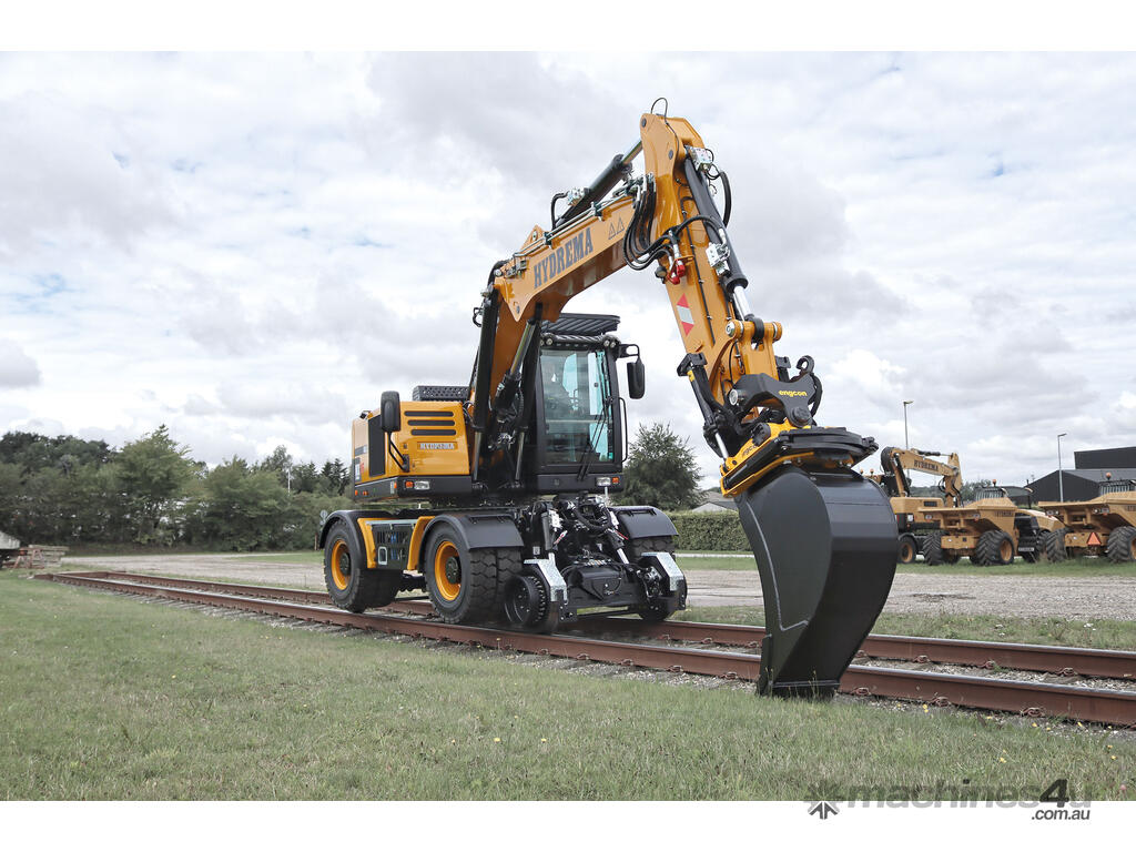 This compact excavator is a factory-fit solution, AS7502 compliant, and designed for both Low-rail (rail guidance) and Hi-rail operations. It is optimized for working on railway tracks, offering exceptional compactness, stability, and flexibility. The compact upper carriage allows work on double-track railways without disrupting traffic on the other track. Despite its size, the machine is highly stable, with a great lifting capacity, making it one of the most compact and versatile options on the market. It can operate in both hi-rail and low-rail positions.