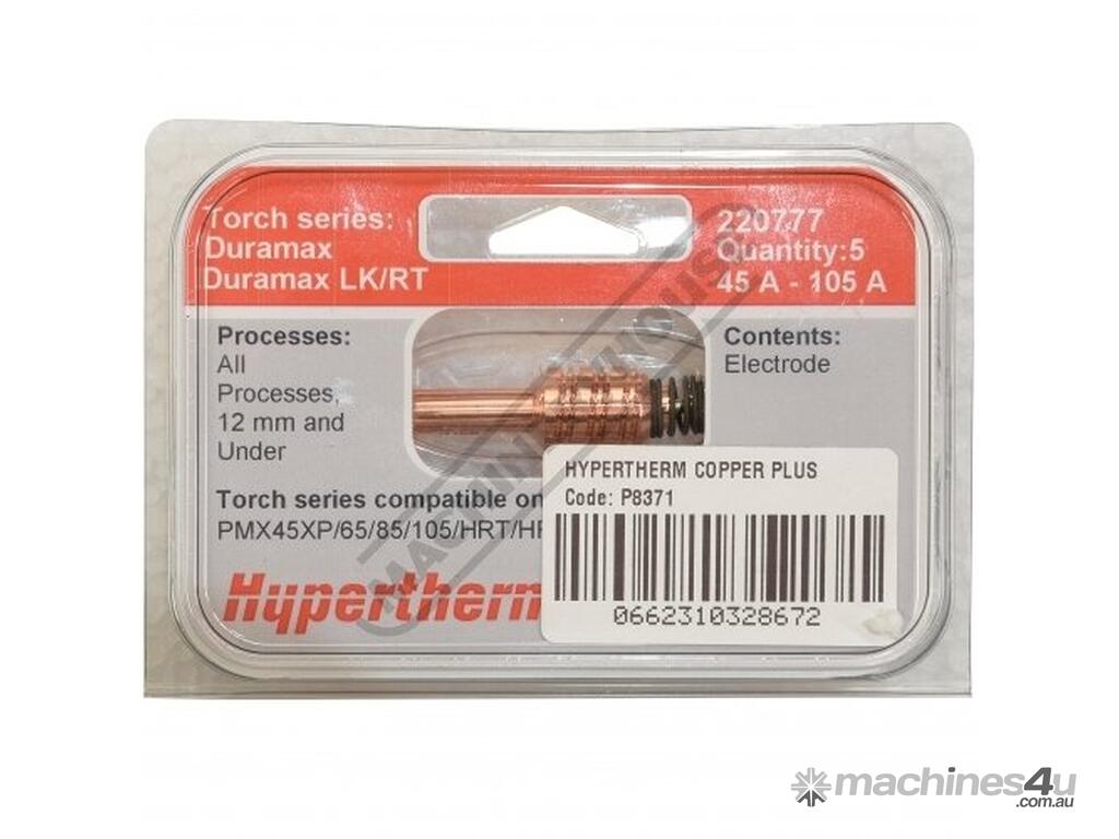 HYPERTHERM Hypertherm 45-105A Copper Plus Electrode 220777 Suits Powermax 45XP/65/85/105 (Pack of 5)