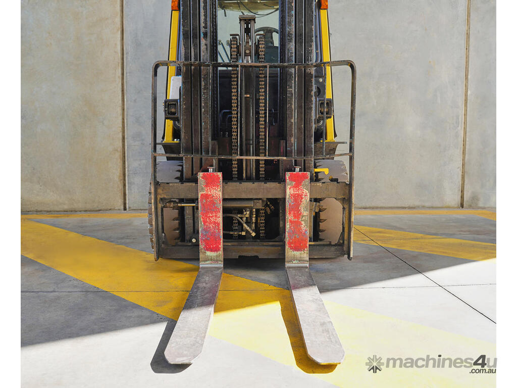 Unit is equipped with side-shift and solid puncture proof tyres.
