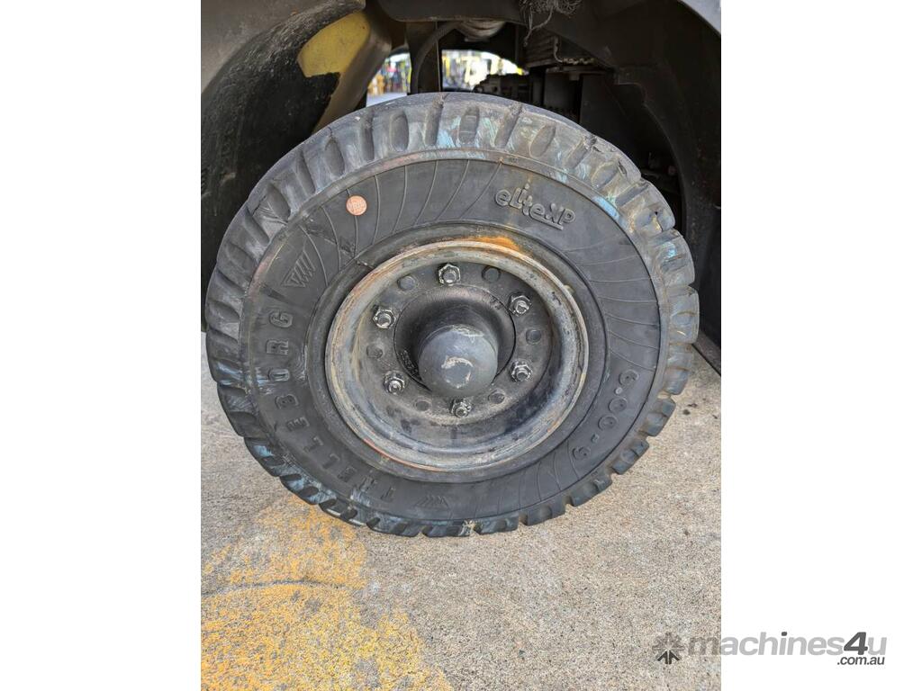 Unit is equipped with integral side-shift and solid tyres.