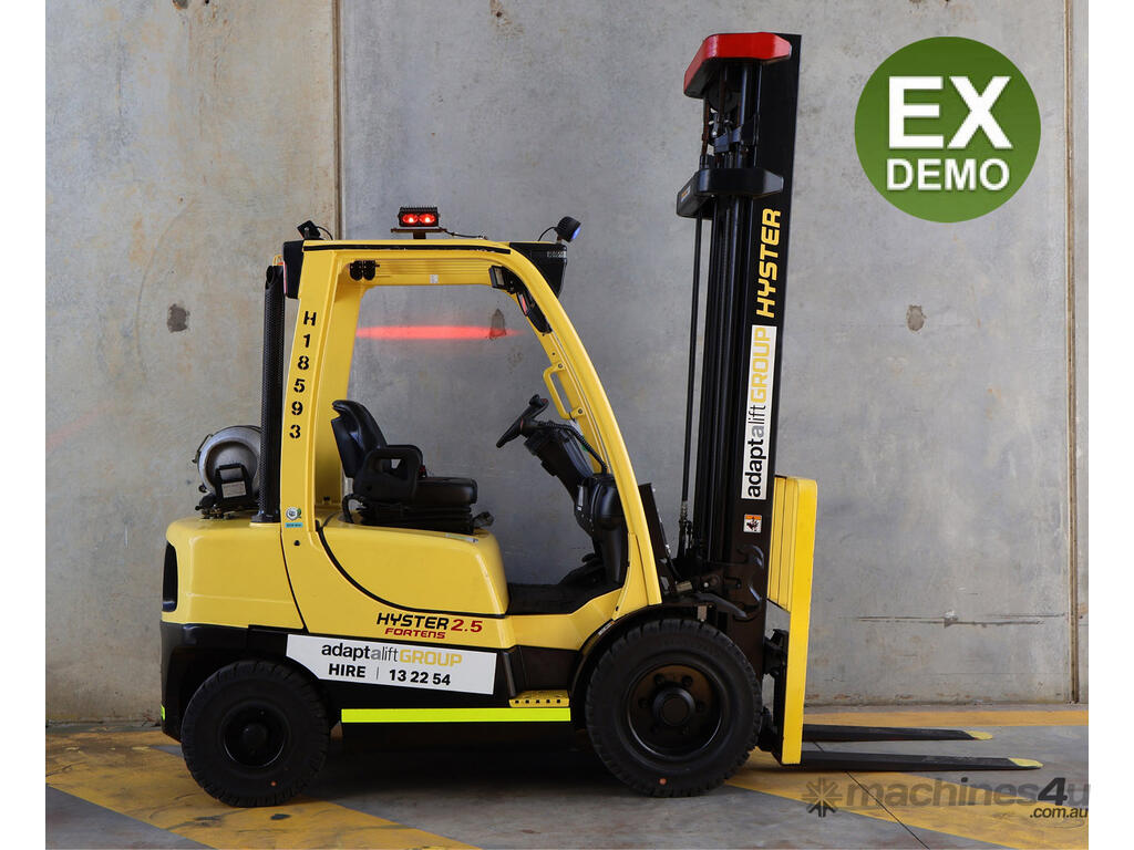 Used Hyster 2.5T LPG counterbalance forklift with PSI 2.4L engine.