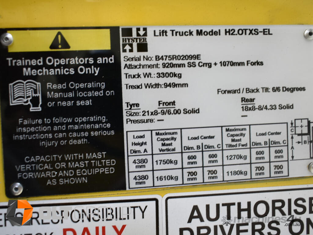 USED HYSTER H2.0TXS 2 TONNE FORKLIFT FOR SALE: