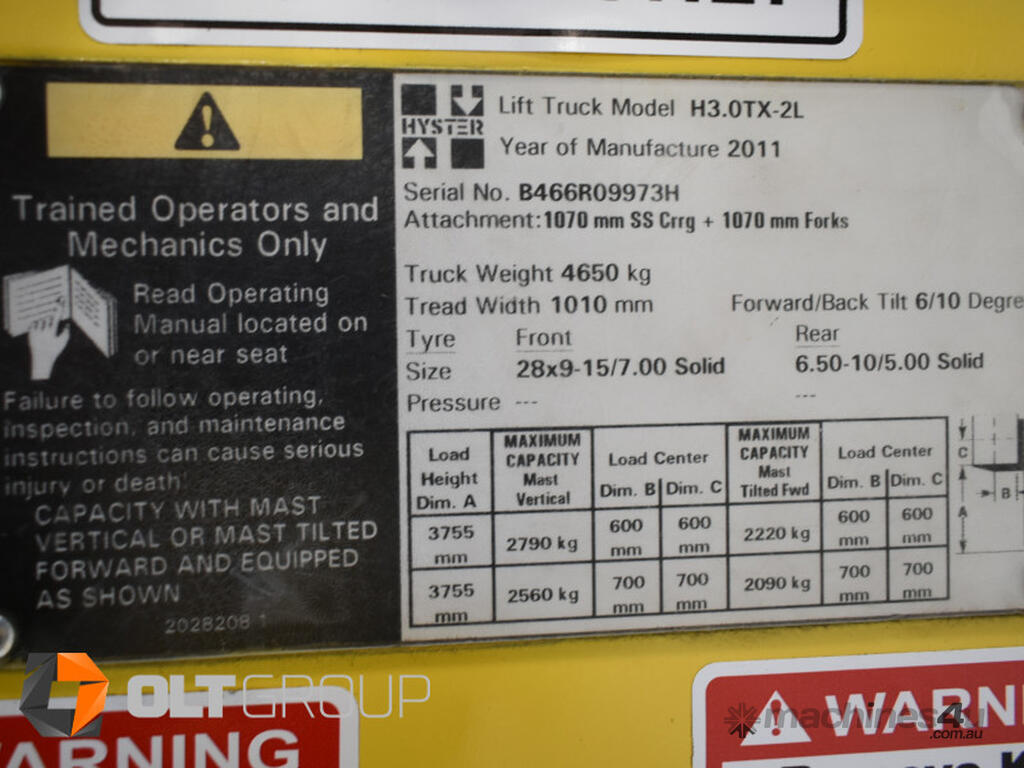 USED HYSTER H3.0TX 3 TONNE FORKLIFT FOR SALE: