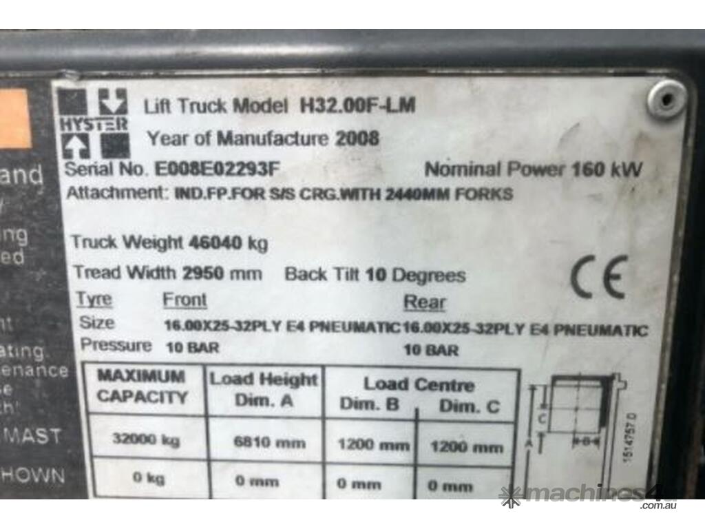CAPACITY: 32,000 kg 1200 mm Load Centre