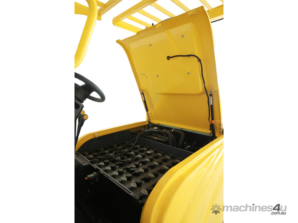 Unit includes AC traction and hydraulic motors, providing smooth acceleration and efficient load handling.
