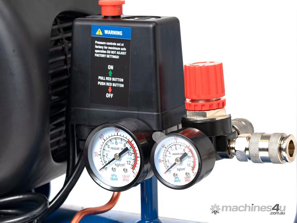 This portable direct drive air compressor is great for sorting those smaller DIY jobs, with 7.07CFM it’s got the power to take care of spraying, blasting, nailing, stapling or polishing. It has an automated on/off control switch and comes fitted with a relief valve for safety. The twin air outlets with dual gauges also mean you can power two tools at once.