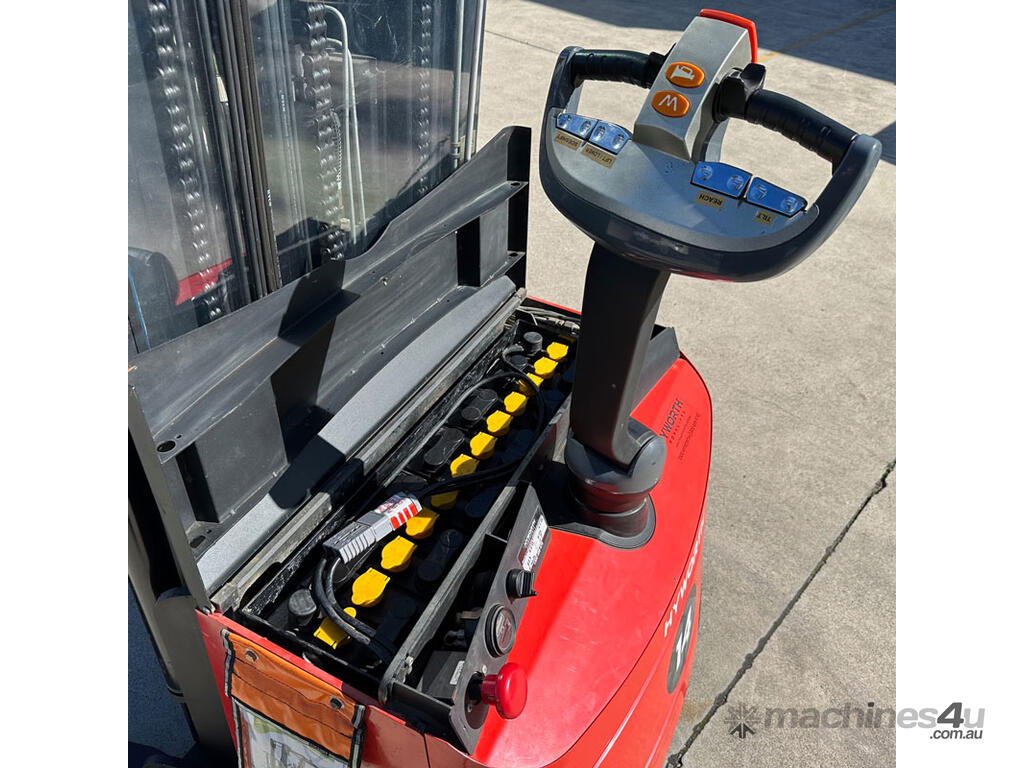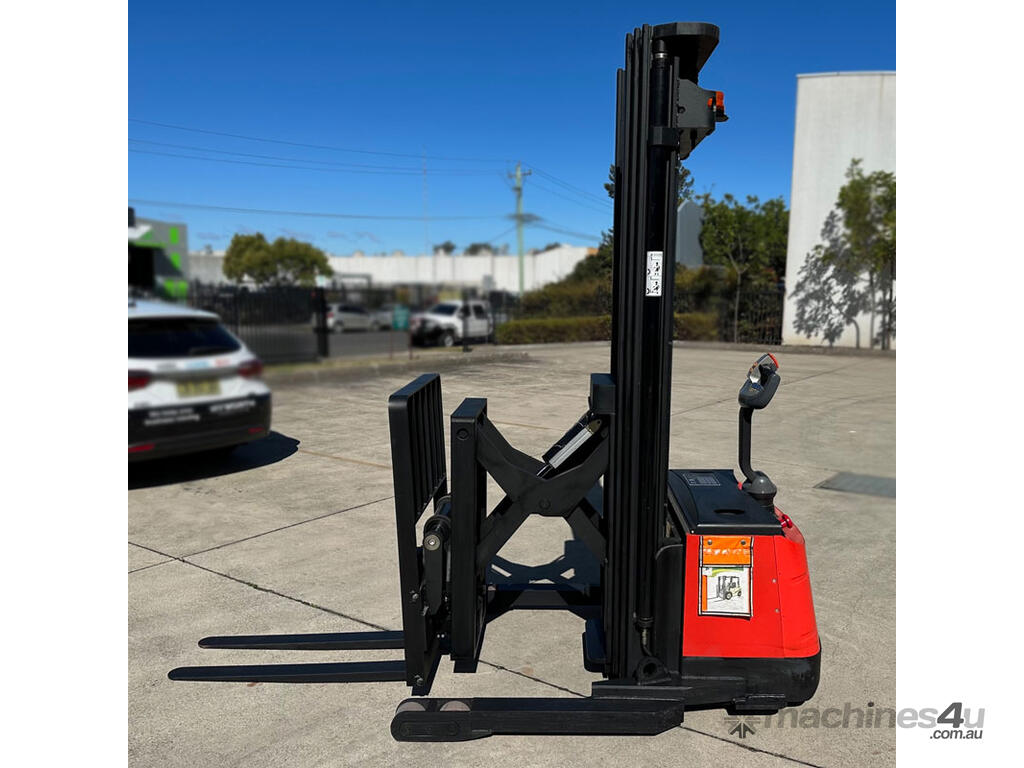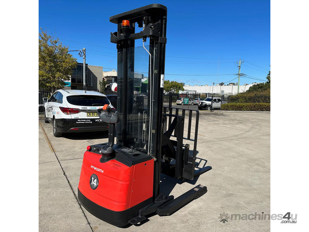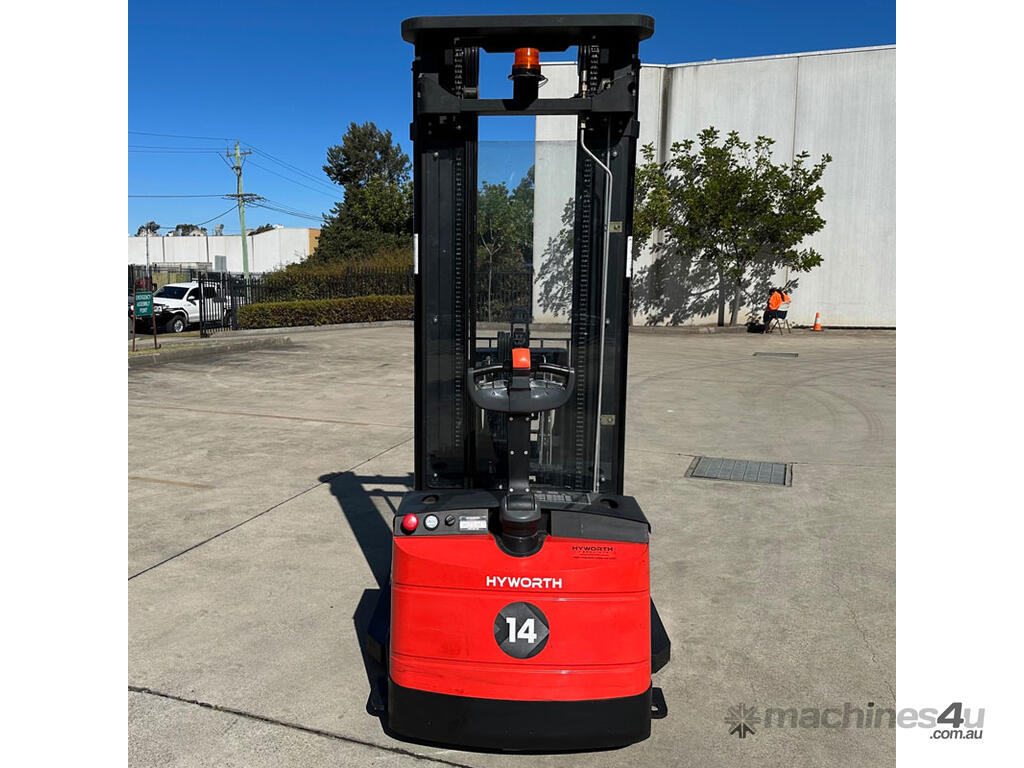 Perfect for narrow aisles and tight spaces, the Hyworth 1.4T Walkie Reach Stacker Forklift provides a massive 5.5m lift height all in a compact and nimble machine.