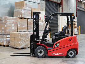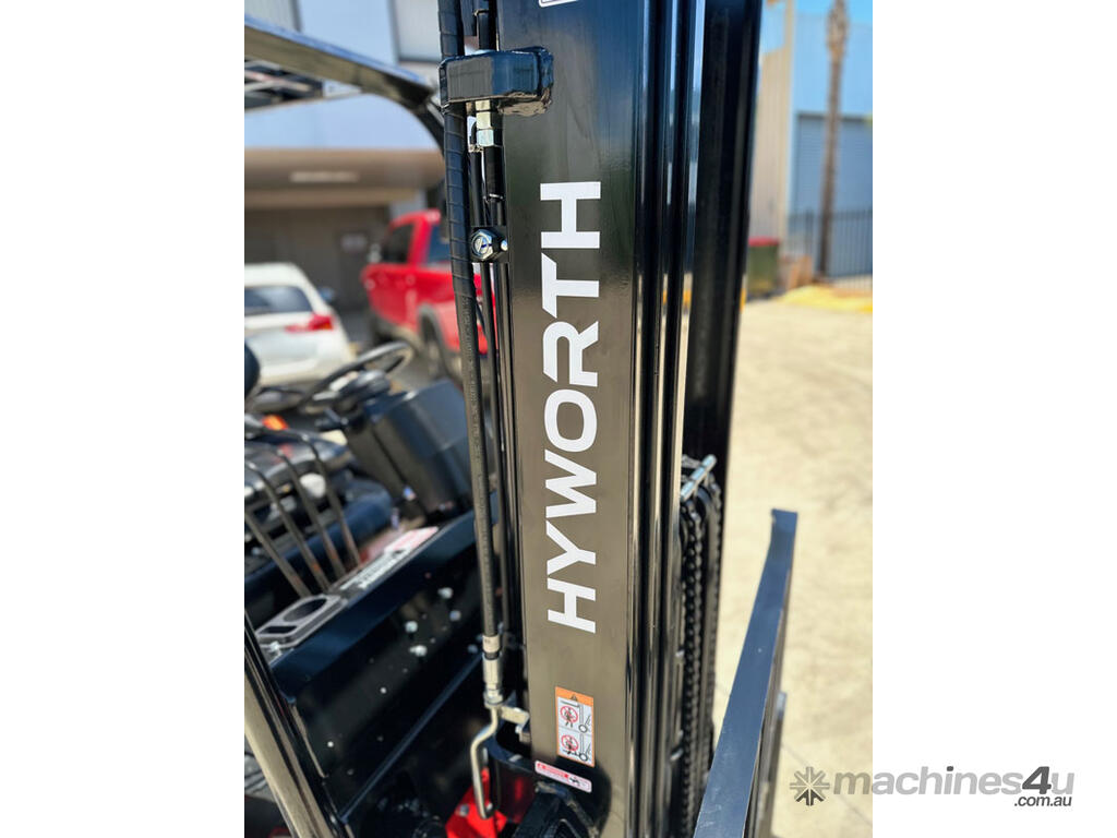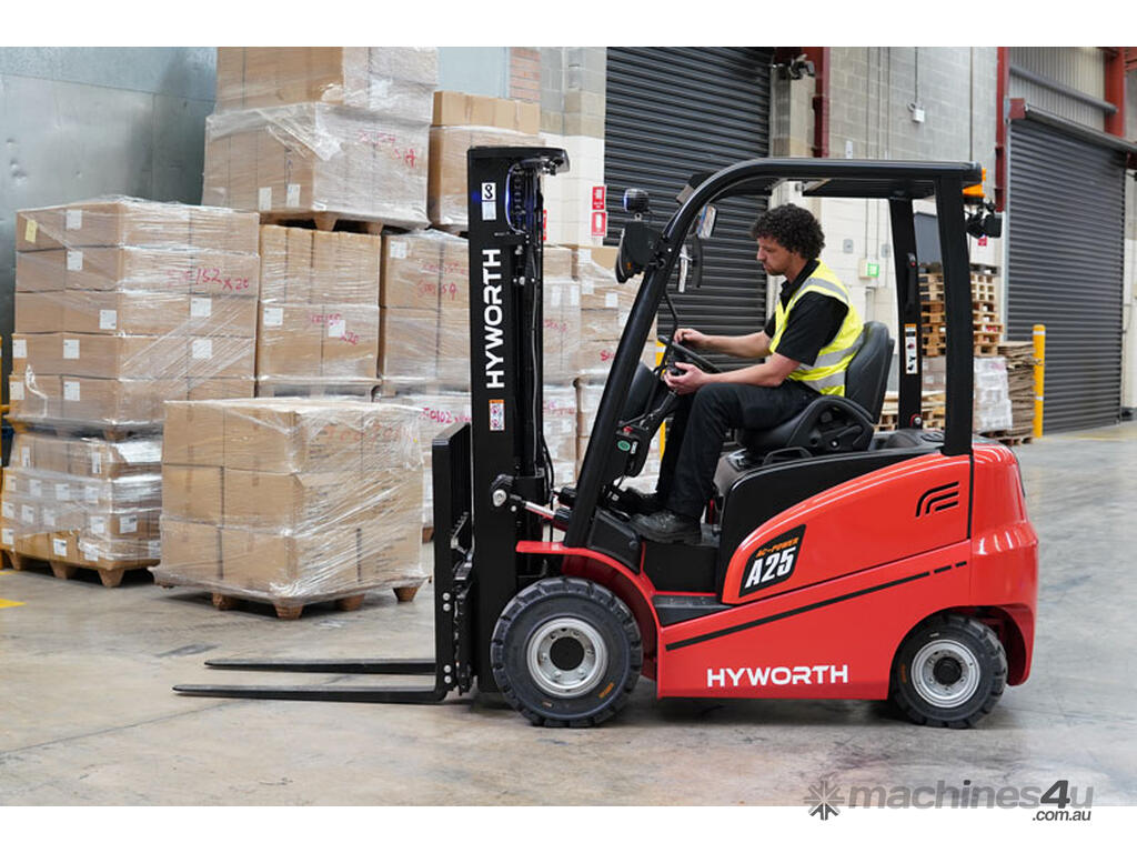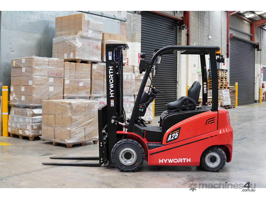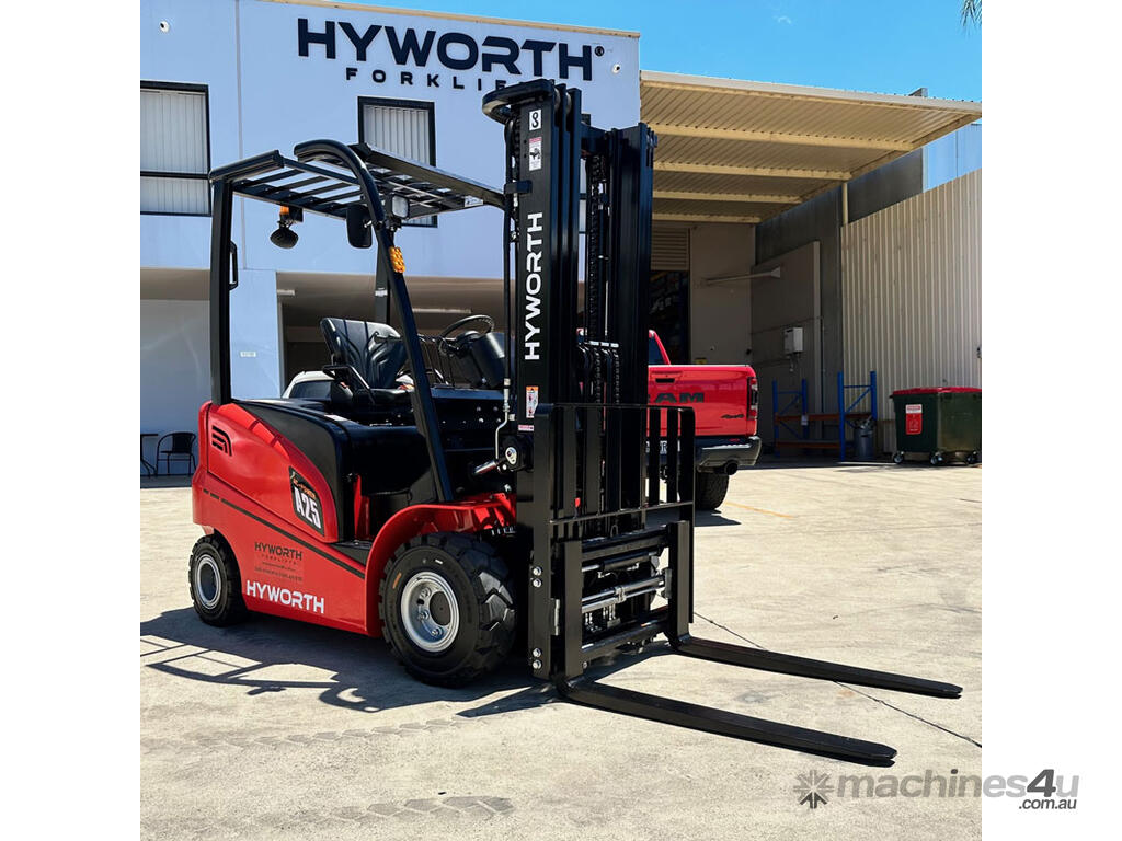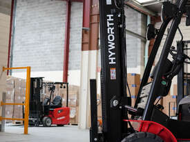 The Hyworth 2.5T 4 Wheel Electric forklift is a powerful workhorse capable of outperforming its LPG engine powered counterpart with the bonus of being very environmentally friendly especially for indoor operations.